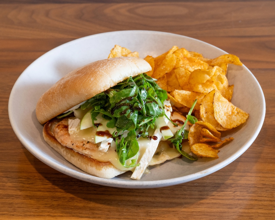 Grilled or crispy chicken, brie cheese, sliced apples, rosemary aioli, arugula, red wine lemon vinaigrette, balsamic glaze
